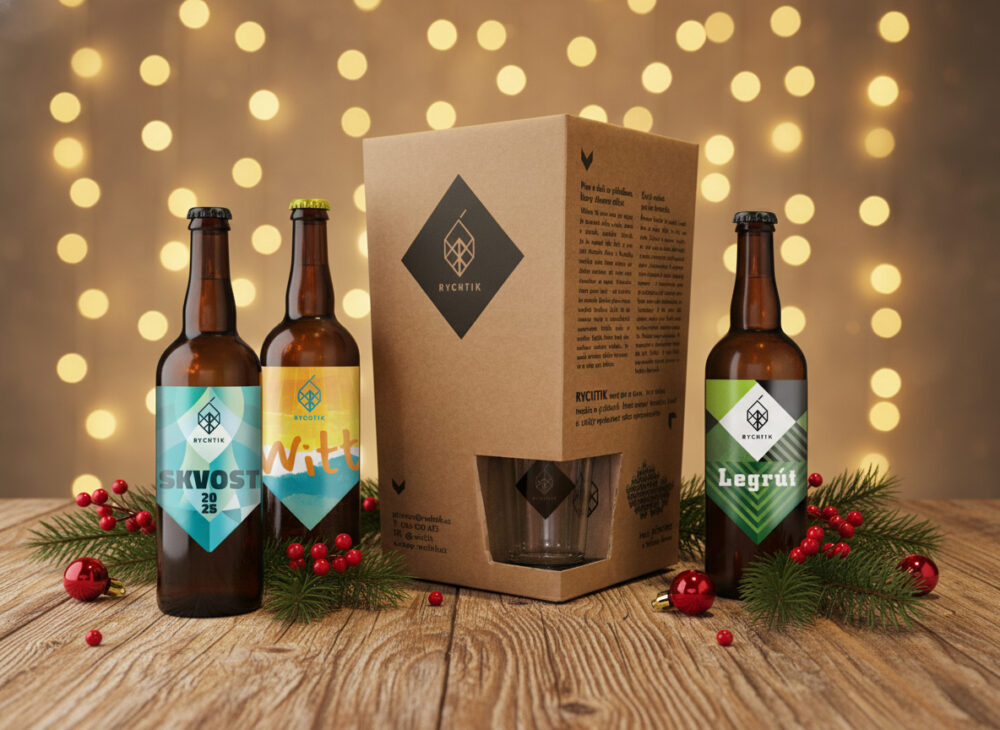 Dárkový karton – 3 láhve se skleničkou 0,3L Rychtik
